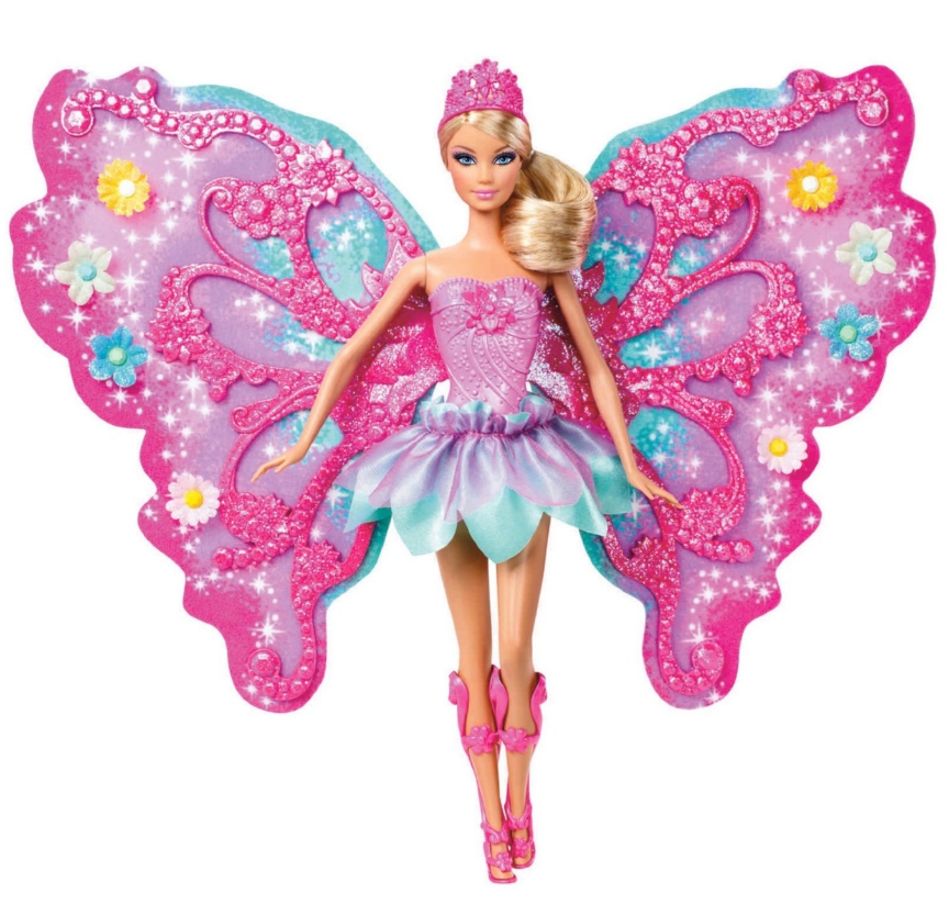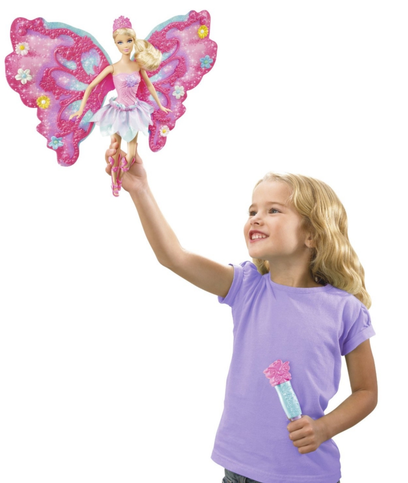 Odkryj magiczny świat wróżek Barbie! Są tak zwiewne, jakby miały za chwilę odlecieć na swoich okazałych skrzydłach iskrzących się refleksami światła. Przecudnie wyglądają w swoich spódniczkach w kształcie kwiatów i z tiarą na głowie. Każda lalka ma magiczną różdżkę dla dziewczynki oraz 8 połyskujących kwiatów. Dziewczynki mogą bawić się "latając" wróżkami i machając ich skrzydłami. Będą miały mnóstwo radości ozdabiając skrzydełka kwiatami.