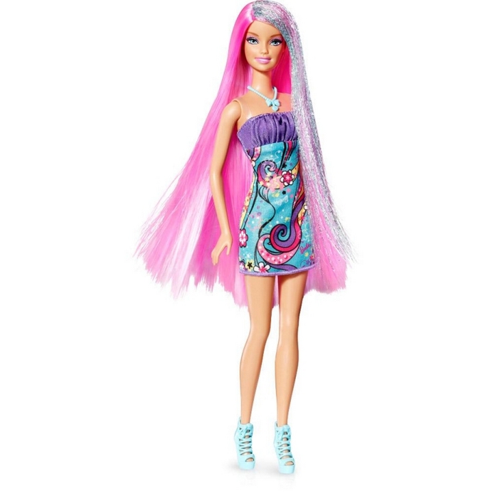 Barbie ma wyjątkowo długie, różowe włosy z brokatowymi akcentami. By móc dbać o swoją fryzurę lalka ma własną oryginalną szczotkę do czesania. Dodatkowo Barbie ubrana jest w modną sukienką z motywem ośmiornicy, a na szyi nosi ciekawy naszyjnik. Lalka nie stoi samodzielnie.