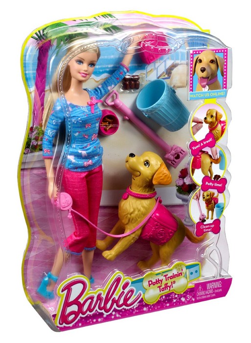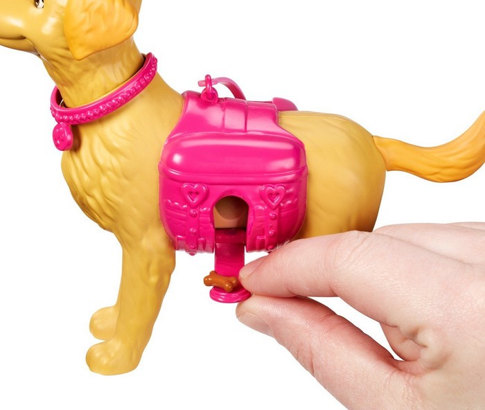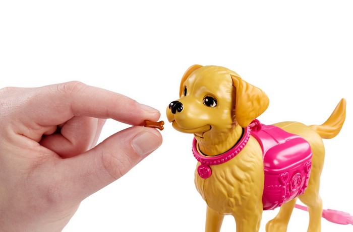 Barbie z Pieskiem BDH74 uwielbia opiekować się swoim czworonogiem. Pomóż jej i razem posprzątajcie po swoim pupilu. Nakarm psa, naciśnij ogon i posprzątaj kupę. Zabawa uczy dziecka opieki nad zwierzakiem.