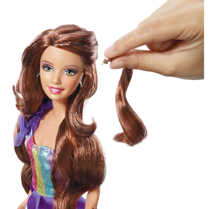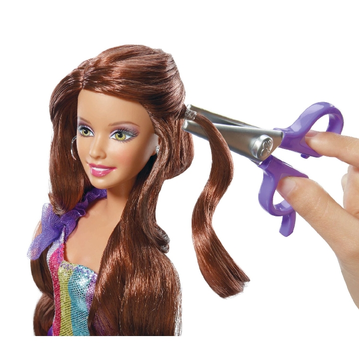 Dzięki Barbie ze skręcanymi włosami zawsze można zrobić fryzurę odpowiednią do nastroju i pory dnia. Teraz dziewczynki za pomocą specjalnych „nożyczek” mogą obciąć włosy Barbie, układając modną – grzeczną – fryzurę z gładkich, krótko przyciętych włosów, lub użyć doczepianych włosów, z których ułożą długą fryzurę. Tylko od wyobraźni dziewczynek zależy ilość fryzur, jakie mogą zrobić!