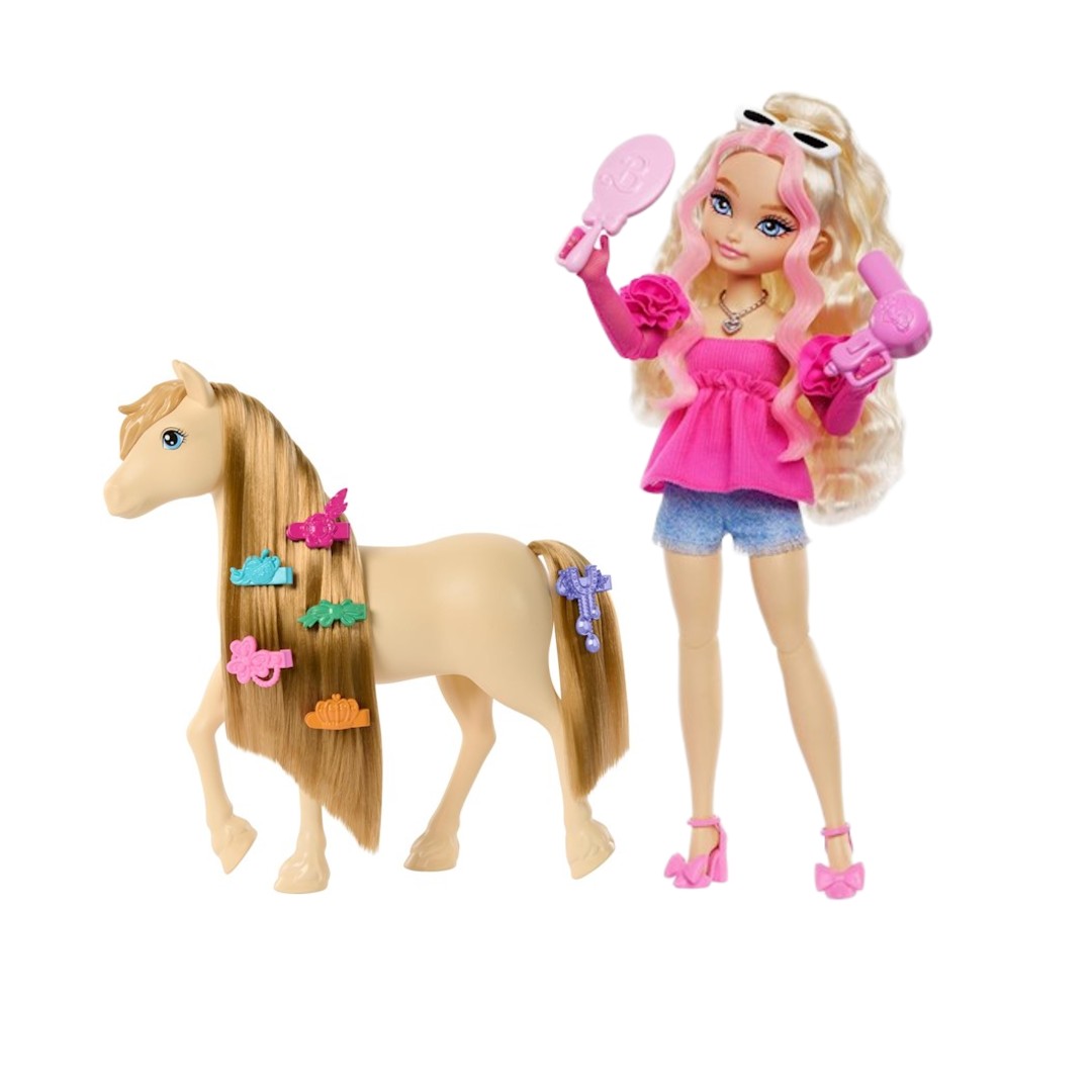 Barbie Zestaw do stylizacji lalka Malibu Dream Besties + Konik Kucyk Tornado HYC21 HXJ36