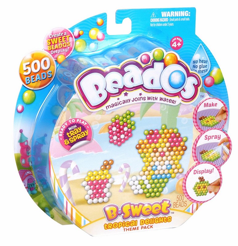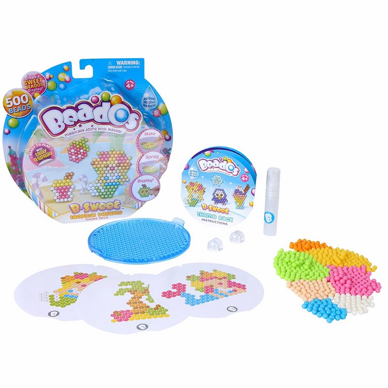 Beados to magiczne koraliki, które łączą się ze sobą po spryskaniu wodą. Z koralików Beados można układać kolorowe i zabawne wzory. Wystarczy ułożyć koraliki na specjalnej podkładce, spryskać je wodą i gotowe. Koraliki Beados połączą się tworząc śliczny, trwały wzór.