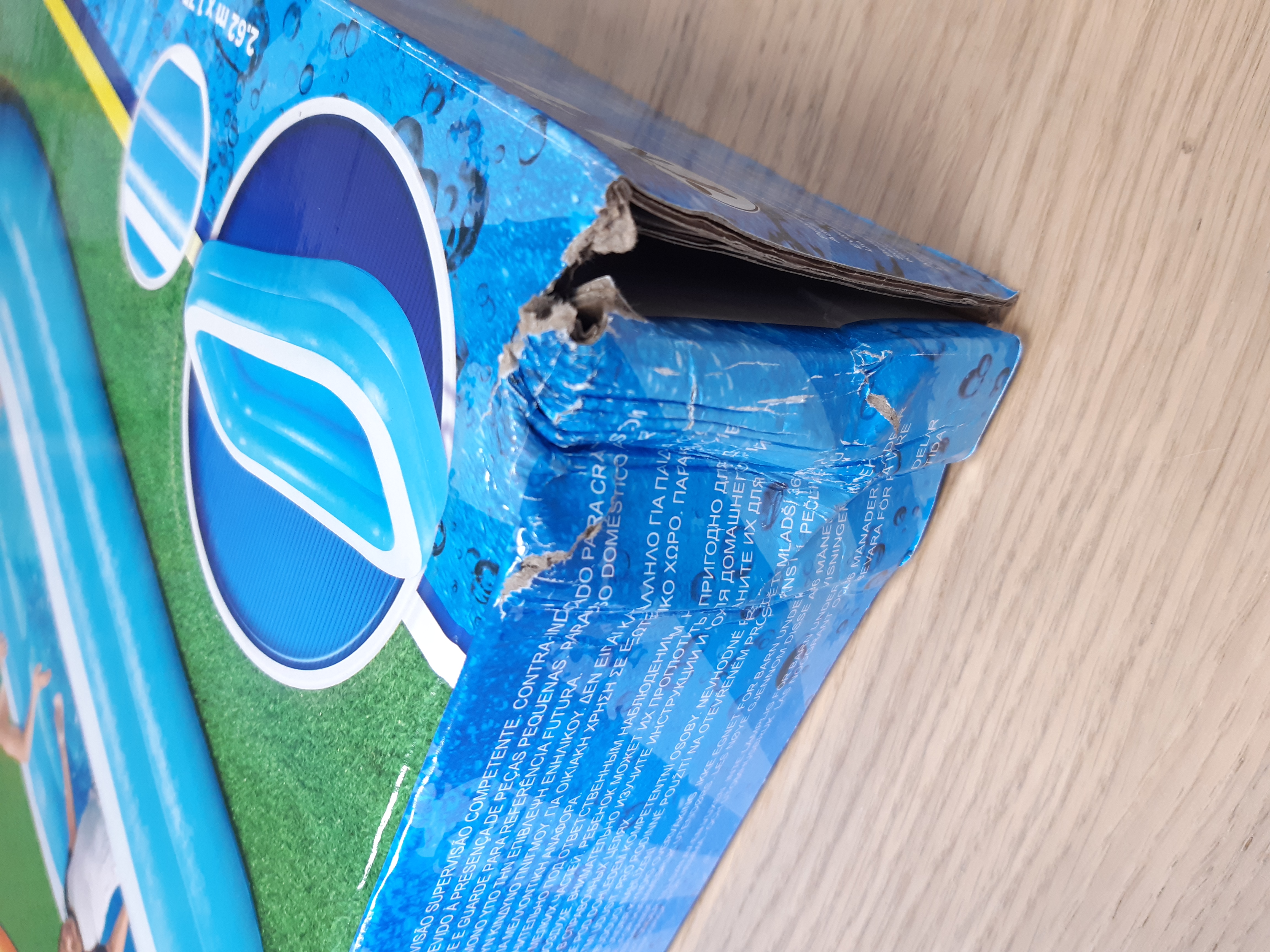 Uwaga! Produkt posiada uszkodzone opakowanie zewnętrzne. Sam basen jest nowy, nieuszkodzony, pełnowartościowy. Wielkość uszkodzenia kartonu jest pokazana na ostatnim zdjęciu.