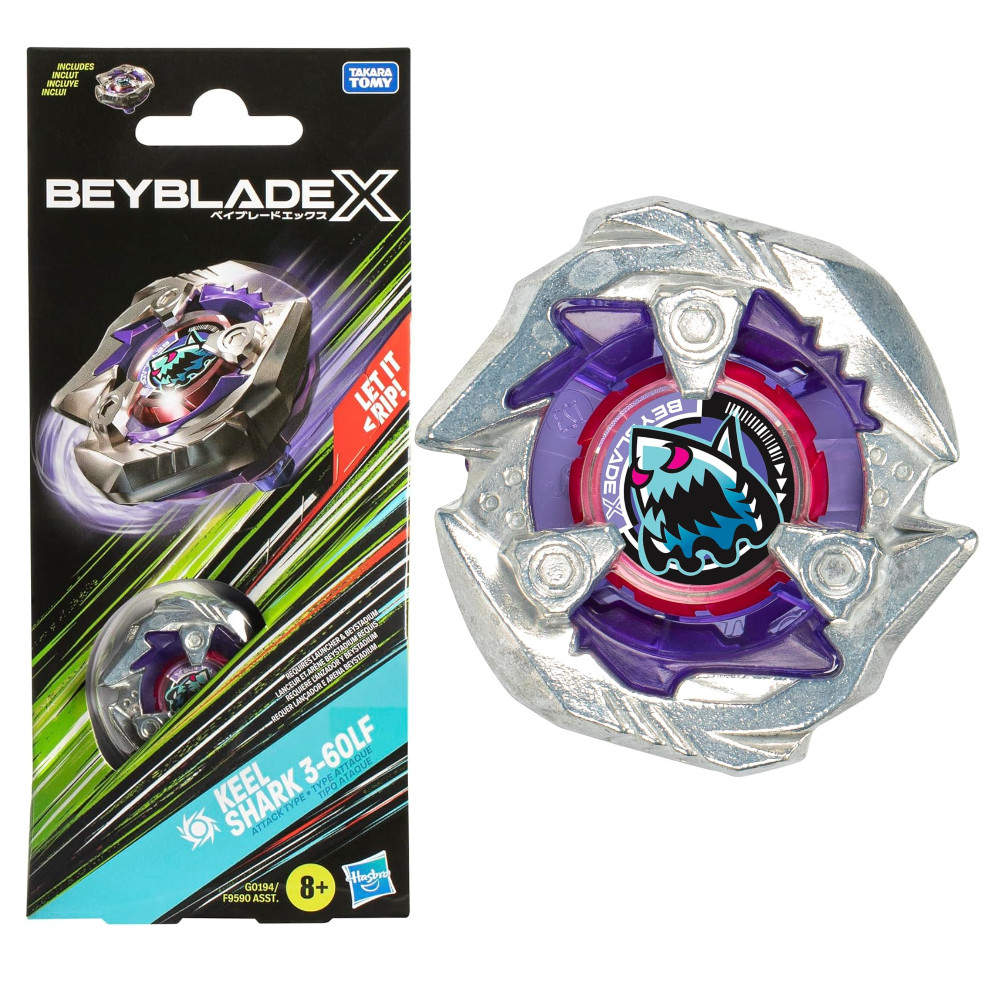 Beyblade X Keel Shark 3-60LF Booster Pack to bączek typu atak, obracający się w prawo, kompatybilny z innymi elementami serii Beyblade X (arena i wyrzutnia sprzedawane osobno). Dzięki systemowi X-Celerator Gear bączek osiąga super przyspieszenie w trybie Xtreme Dash, zapewniając widowiskowe starcia i efektowne zderzenia. Gracze rywalizują o 4 punkty w dynamicznych pojedynkach. Oryginalne metalowe części Takara Tomy sprawiają, że to idealny prezent.