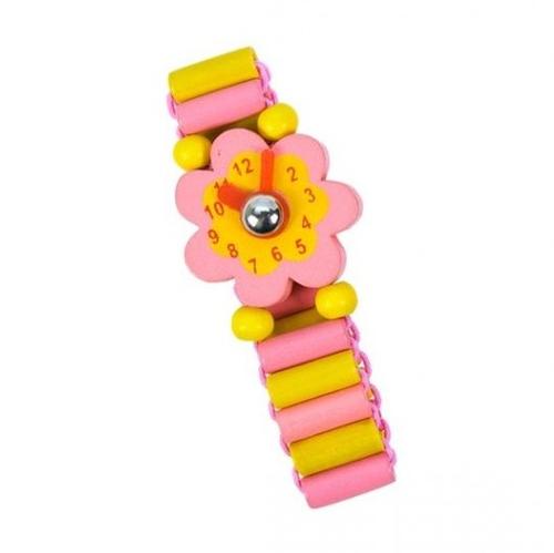 Uroczy dodatek, który zaciekawi dziecko do nauki czasu zegarowego. Zegarek w kolorze różowo-żółtym z tarczą w kształcie kwiatka. Idealny upominek dla dziewczynki. Bransoletka na gumce, znakomicie dopasuje się do dziecięcego nadgarstka. Ruchome wskazówki będą świetną pomocą przy nauce odczytywania godzin, zegarek przyda się także do zabaw z odgrywaniem ról i jako biżuteryjny dodatek dla młodej damy.