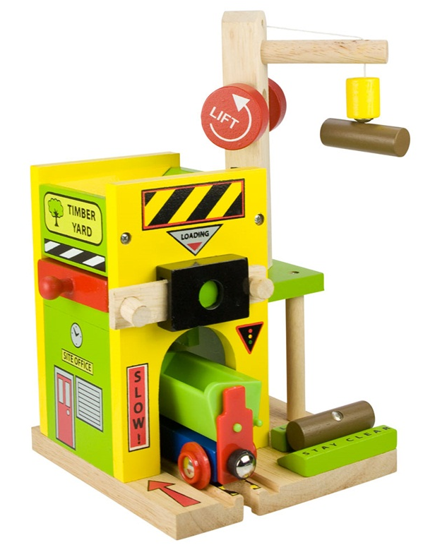 Zestaw zawiera specjalny wagonik na drewno, dwie kłody oraz zielone lub czerwone światło.