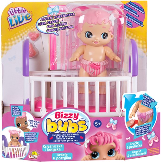 Bizzy Bubs to bobaski, które nie mogą doczekać się kiedy będziecie się bawić! Podskakują i mówią jak prawdziwe bobasy, a także bawią się w chowanego. Dzięki akcesoriom zawartym w zestawie teraz mogą spokojnie odpocząć w łóżeczku albo pojechać w każdą podróż ze swoim nosidełkiem. Sprawdź jak chodzą, raczkują i chichoczą.