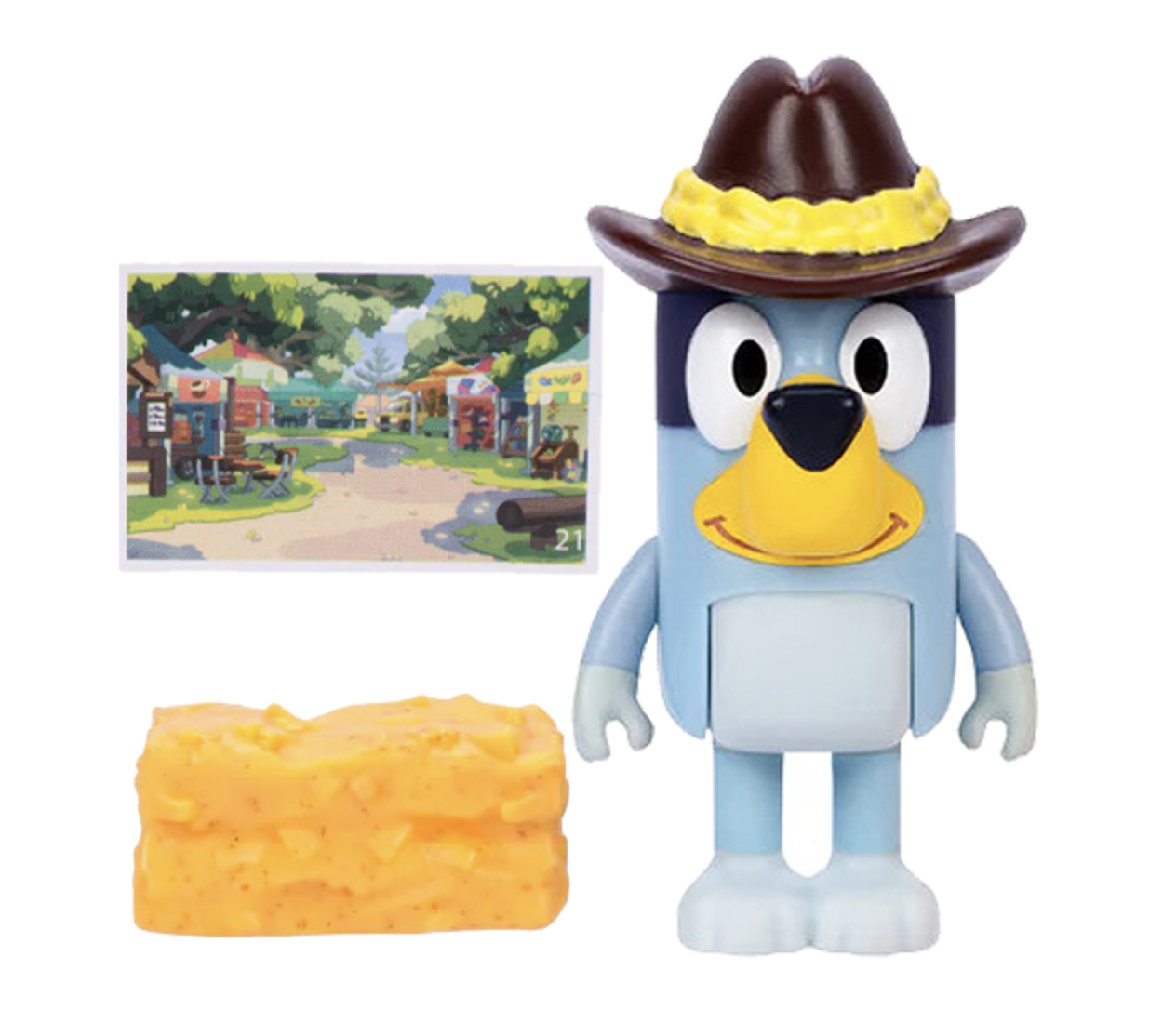 Zestaw Początek zabawy nawiązuje do jednego z odcinków serialu animowanego. Zawiera pieska Bluey w kowbojskim kapeluszu ze stogiem siana i uroczą mini pocztówkę, która przedstawia scenę z bajki.