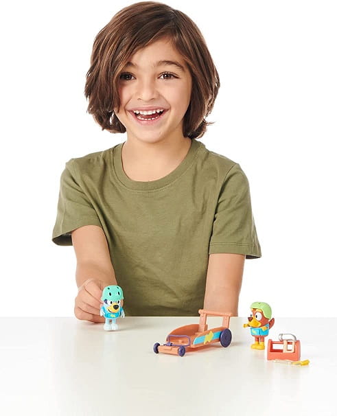 Dwuosobowy Go-Kart zapewnia mnóstwo zabawy i szybkości dla przyjaciół Bluey'ego i Rusty'ego, a jeśli po drodze przydarzy się jakaś awaria, mogą naprawić auto za pomocą dołączonych narzędzi.