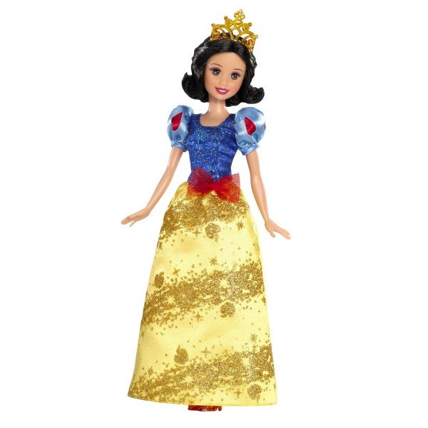 Śnieżka należy do grona ulubiona księżniczek Disneya niemalże każdej dziewczynki. Teraz prezentuje się cudownie w przepięknej sukni balowej ozdobionej błyszczącymi wzorami i motywami graficznymi z bajki. Każda lalka z serii ma niepowtarzalną suknię w unikatowym kolorze charakterystycznym dla danej księżniczki. Laleczki mają też na głowach błyszczące diademy, a na nóżkach błyszczące pantofelki. Lalki nie stoją samodzielnie.