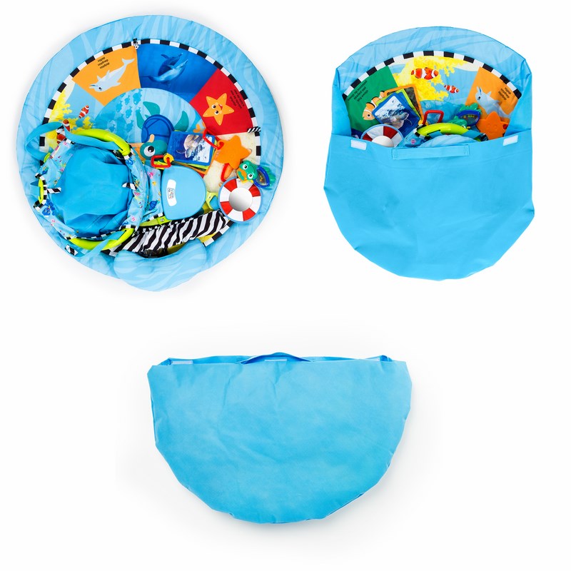 Matę można złożyć na kształt przenośnej torby, w której przechowujemy skoczek i pozostałe zabawki. Dzięki takiemu rozwiązaniu skoczek można zabrać ze sobą w każdą podróż i w łatwy sposób przechować.
