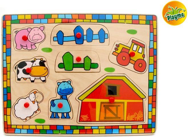 Melissa&Doug Drewniane Puzzle z dźwiękiem Farma Zwierzęta 7 elementów 94425
