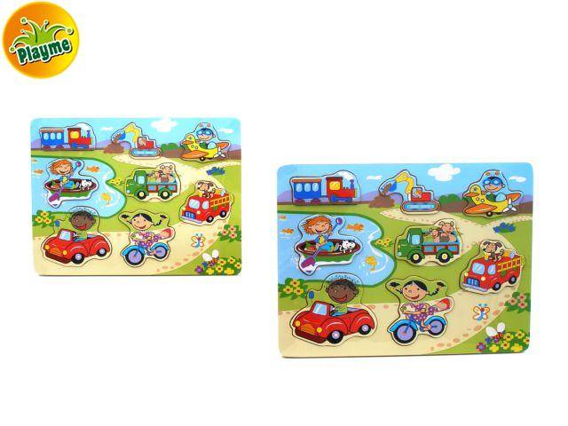Pojazdy to drewniana układanka edukacyjna, która rozwija i kształtuje wyobraźnie, zdolność kojarzenia i zdolności manualne dziecka. Dzięki temu, że pojazdy są jednocześnie puzzlami, dzieci uczą się dopasowywania kształtów. Dodatkowo ciuchcia, koparka, kabriolet, helikopter, łódeczka cze samolot pomalowane są żywymi barwami co pozwala na naukę kolorów.