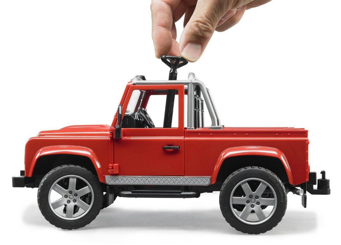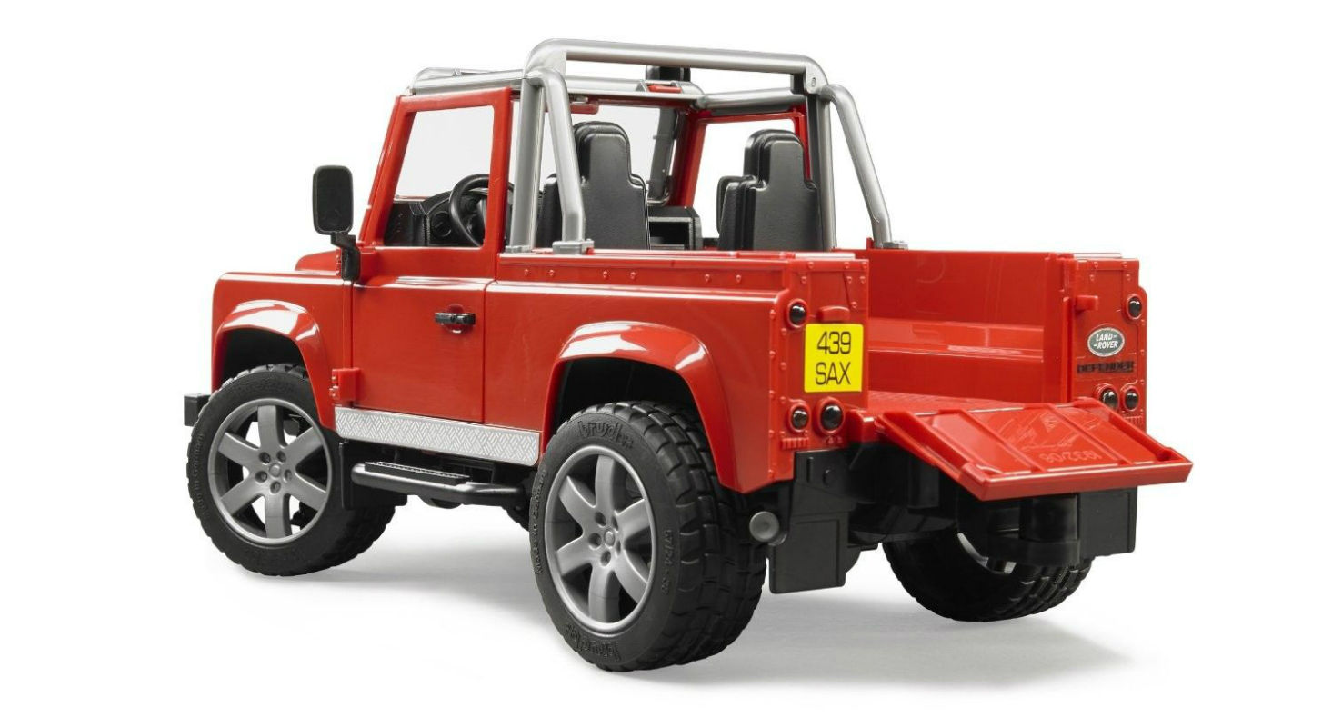 Bruder Land Rover Defender Pick-Up czerwony 02591 modele niemieckiej firmy Bruder to niezwykle realistyczne odwzorowania różnych, oryginalnych pojazdów i maszyn. Każdy z nich wykonany jest z wysokiej jakości plastiku, dodatkowo wykończony elementami gumowymi.