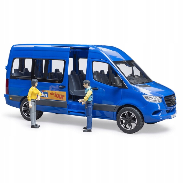 Bus Mercedes Benz Sprinter z figurkami to doskonale odwzorowany względem prawdziwego modelu samochód w skali 1:16. Niebieski pojazd przeznaczony jest do zabawy dla dzieci powyżej 3 roku życia i cechuje go najwyższa jakość wykonania, świetnie odwzorowane detale oraz wyjątkowa wytrzymałość. Bus wycieczkowy przeznaczony jest do przewozu wszystkich figurek z serii bWord. W granatowym pojeździe znajduje się 10 wygodnych miejsc dla pasażerów. W zestawie znajdują się również dwie figurki: mężczyzny i kobiety. Figurki ludzików posiadają ruchome ręce, nogi i głowę. Zginane łokcie, kolana, ramiona, biodra pozwalają na swobodne kształtowanie pozy figurki. Obie figurki mają 11 cm wysokości. Dołączone do zestawu figurki pozwolą na odegranie ciekawych historyjek.