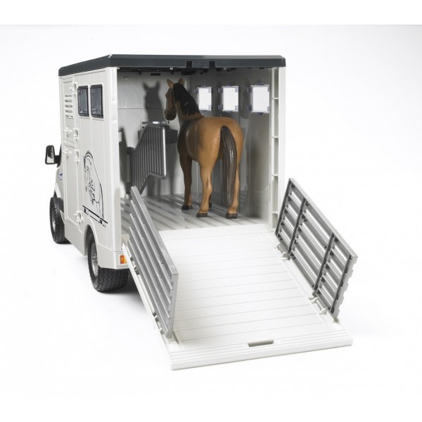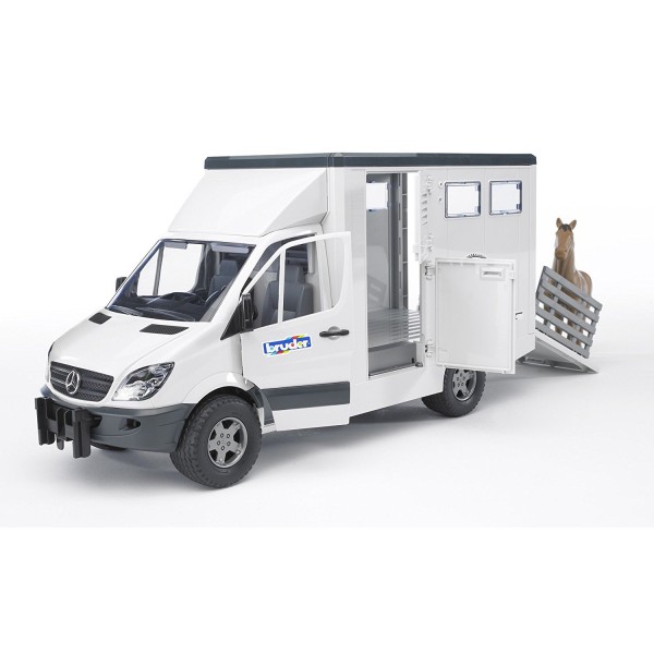 Mercedes Benz Sprinter jest realistyczny, wykonany z niezwykłą dbałością o każdy szczegół. Prezentuje on pełną różnorodność oferowanych funkcji: otwierane boczne i tylne drzwi, rozkładane najazdy do załadunku koni, ruchoma przegroda i wiele innych. W zestawie dołączona figurka konia.
