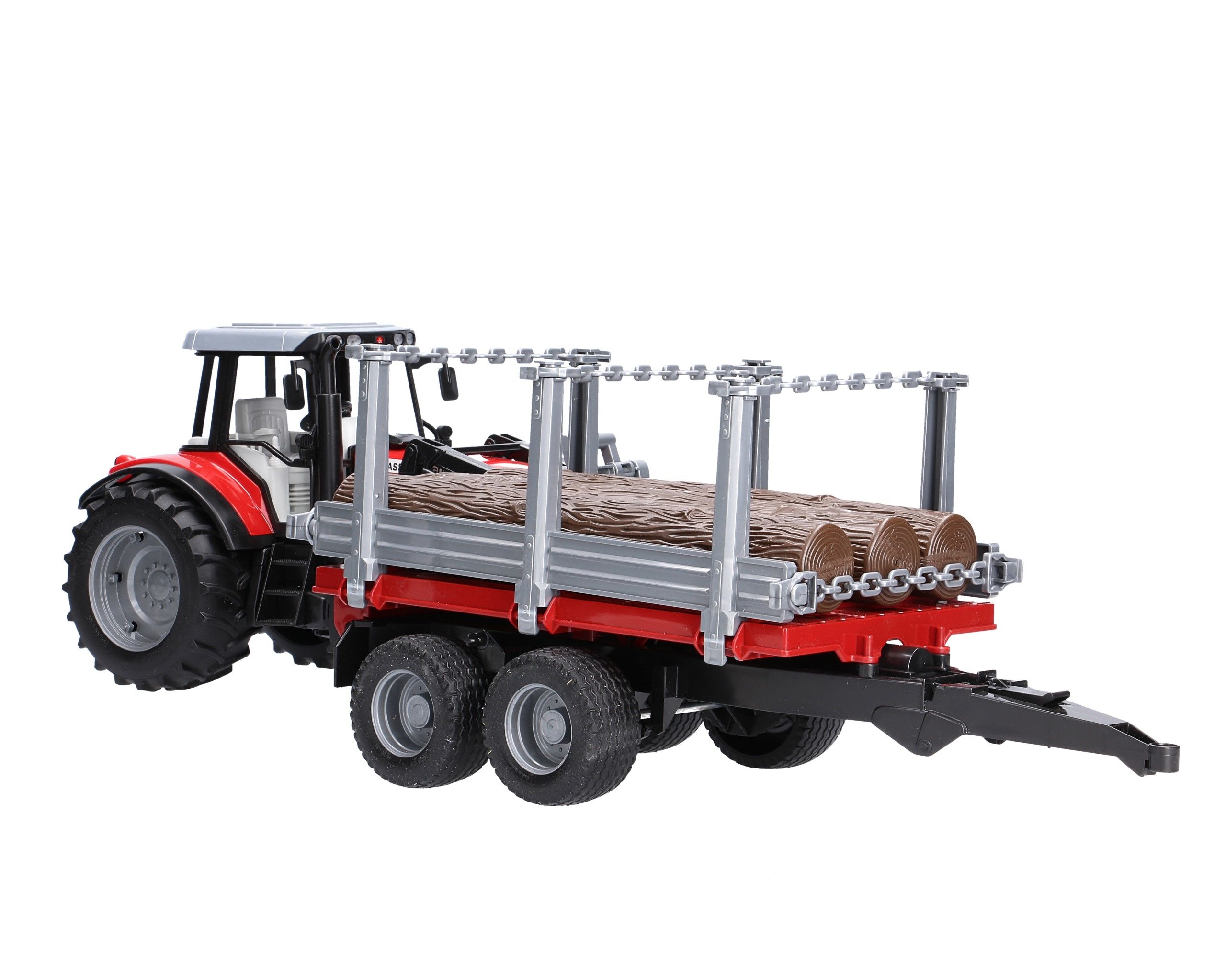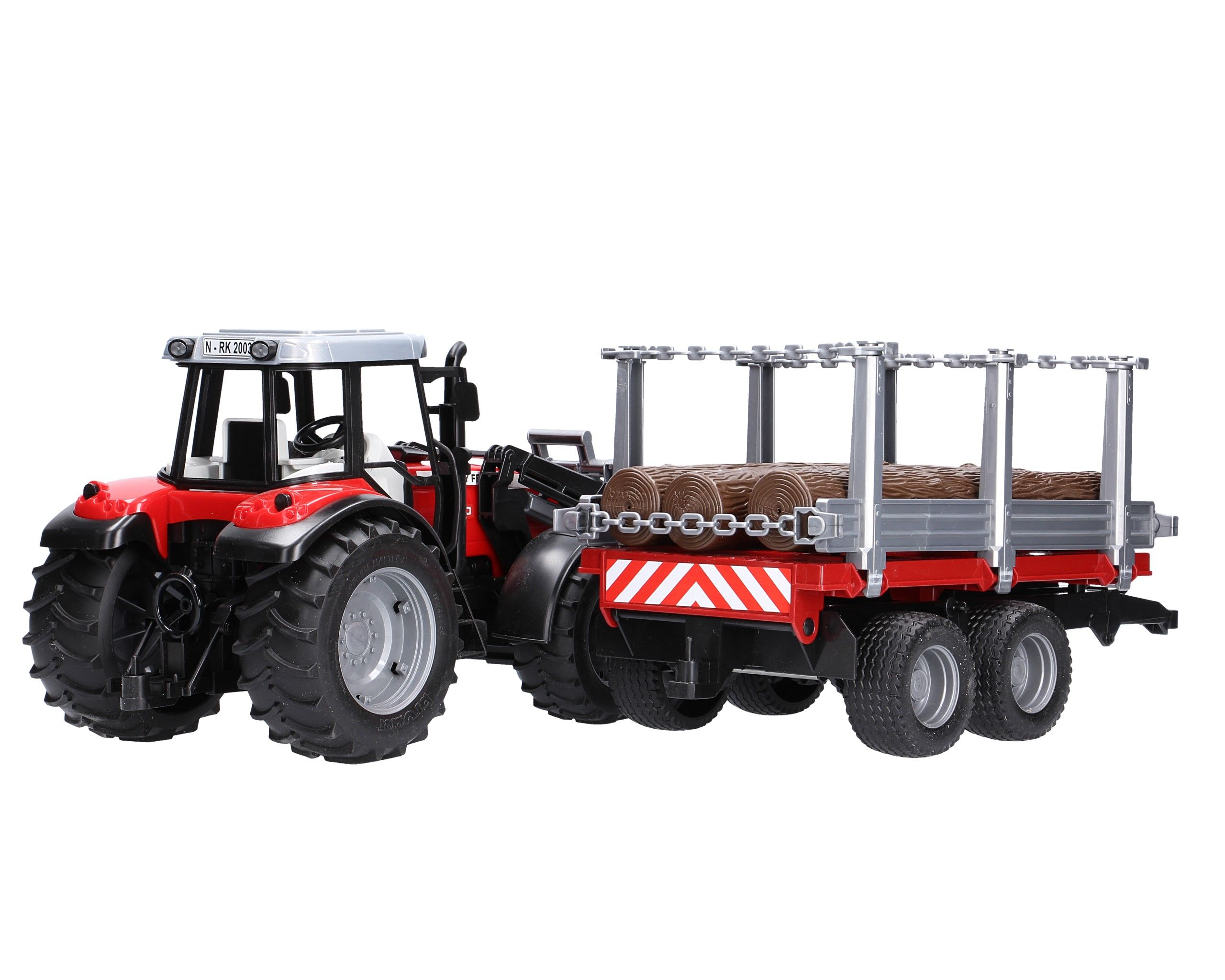 BRUDER TRAKTOR MASSEY FERGUSON Z PRZYCZEPĄ DO WYWOZU DRZEWA 02046