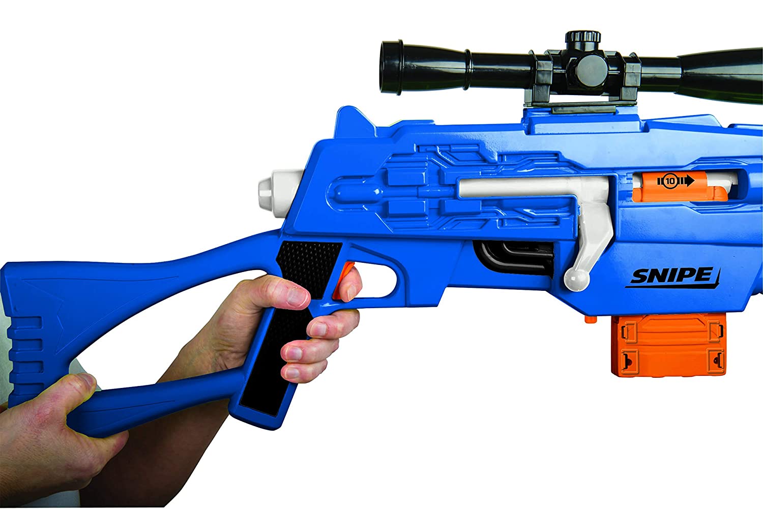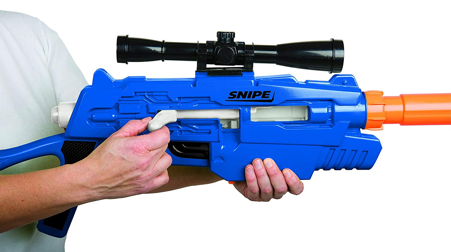 Snipe - następca wyrzutni Master-Tek - to wyrzutnia wyglądem przypominająca karabin snajperski z zasuwką typu „bolt action”. Bolt action to sposób przeładowywania, w którym odsuwamy zasuwkę w lufie, a następnie ponownie ją zamykamy. Wyrzutnia wyposażona jest również w lunetę z podziałką zakładaną na górną szynę taktyczną. Dodatkowo mamy w zestawie wkręcaną lufę, którą w razie potrzeby można zdemontować. Wyrzutnia z przedłużeniem lufy ma około 90 cm długości!