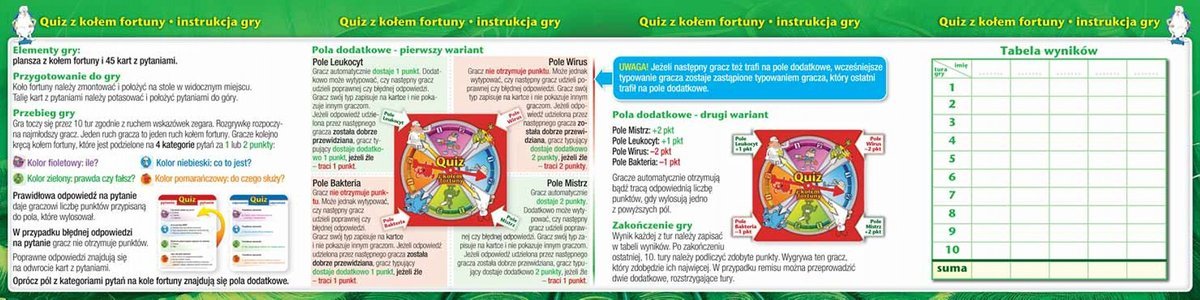 Sprawdź swoją wiedzę i poddaj się losowi w grze „Było sobie życie - Quiz z kołem fortuny”. Reguły są proste: wprowadzając w ruch koło fortuny, gracz zaciska kciuki i czeka na szczęśliwy traf - od koła fortuny zależy bowiem, czy poprawna odpowiedź na pytanie będzie warta 1 czy 2 punkty. Rodzaj pytania, jakie można wylosować to nie wszystko. Dodatkowo wskazówka koła fortuny może trafić na pola z wirusem, mistrzem, bakterią lub leukocytem. Ich znaczenia możesz poznać już dziś!