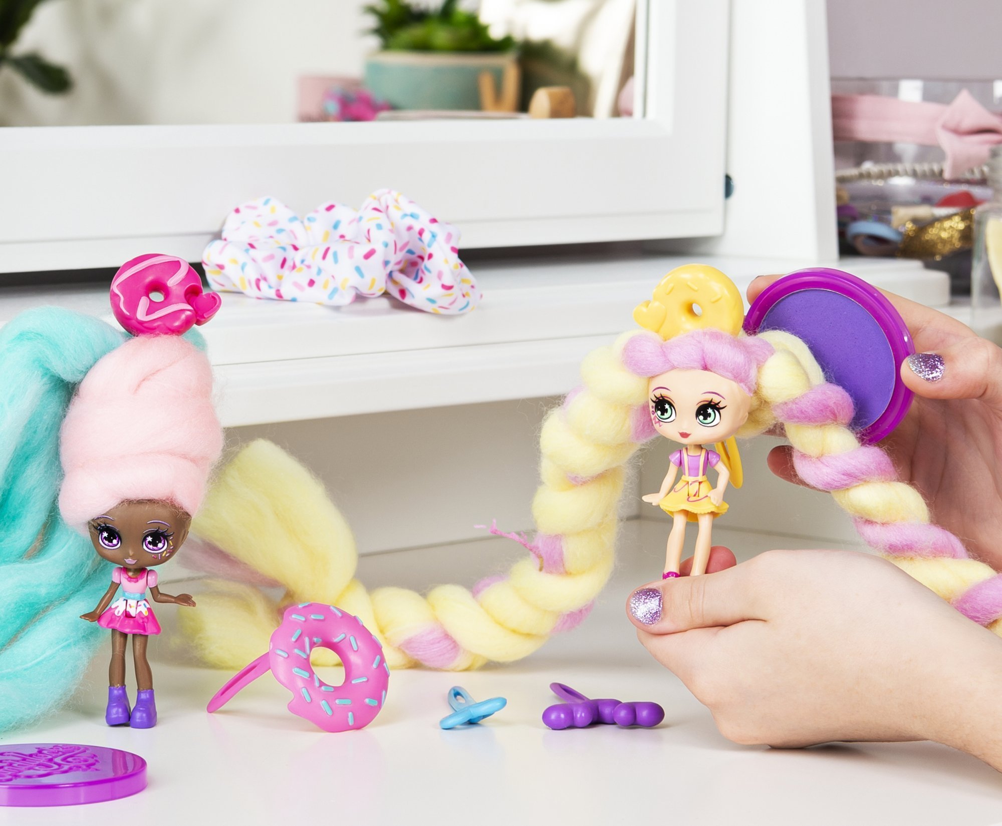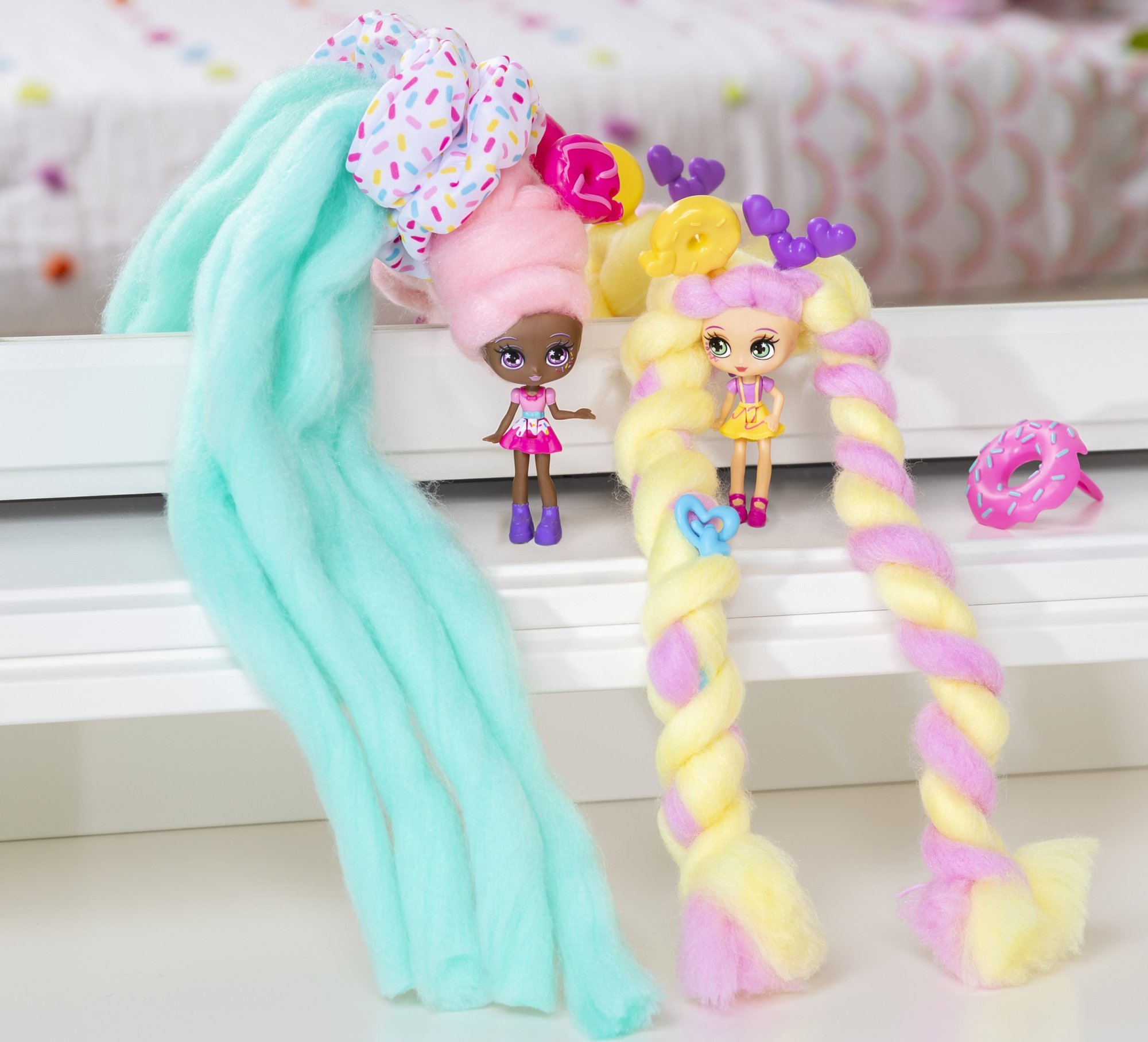 Lalki mają ok. 7,5 cm wysokości, natomiast ich włosy aż 38 cm długości! Dzięki unikalnej teksturze włosów można tworzyć z nich przeróżne fryzury, nawet bez użycia szczotki i innych akcesoriów do stylizacji. Dodatkowo włosy są pachnące, co dodatkowo umili zabawę. Do zestawu dołączono także akcesoria ozdobne.
