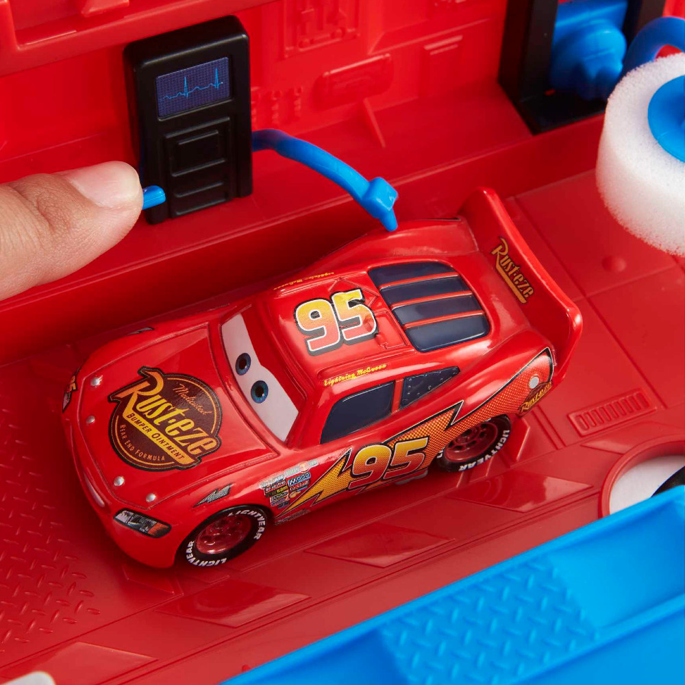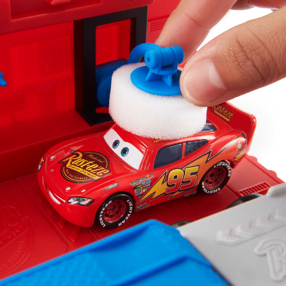 Po otwarciu naczepy bohatera Mańka odkryjesz strefę serwisową z postacią Guido oraz wieloma funkcjami do przygotowania samochodów do wyścigu. Można „umyć” auta w myjni z ruchomą gąbką, zatankować je przy dystrybutorze i sprawdzić ich stan techniczny.