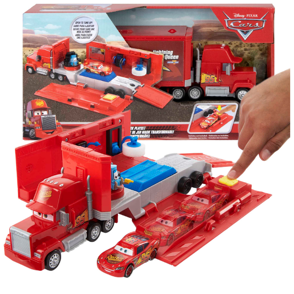 Wyrusz w wyścigowe przygody z zestawem inspirowanym filmem Cars! Cieżarówka Maniek to wyjątkowy pojazd 2w1, który pełni funkcję zarówno ciężarówki transportowej, jak i rozbudowanego warsztatu wyścigowego.