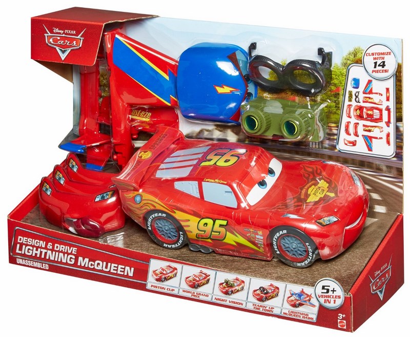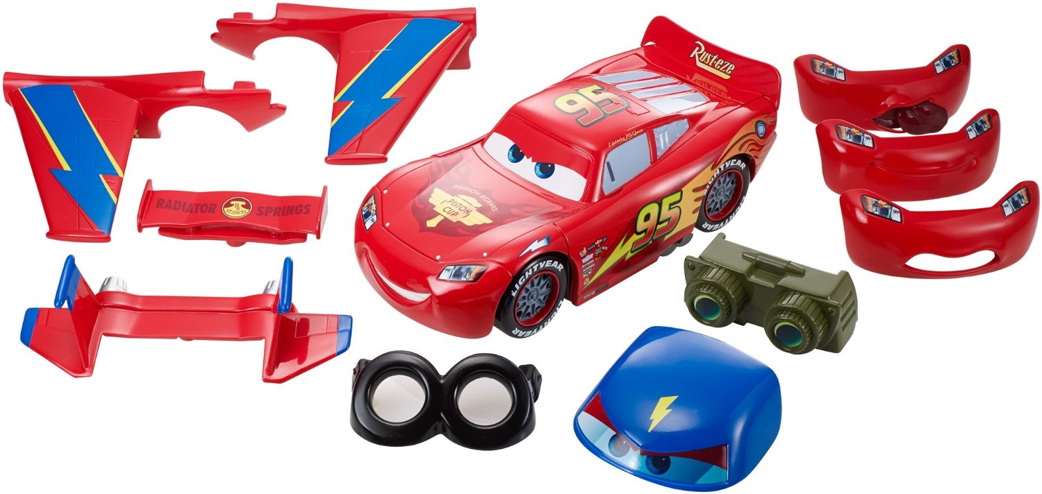 Po co ograniczać się do jednego Zygzaka McQueena, jeśli można mieć go w pięciu wersjach? Dzięki temu zestawowi dzieci z radością mogą realizować własne pomysły na wygląd ich ulubionego bohatera! Ten duży pojazd wyposażony w odjazdowe wymienne części umożliwia zbudowanie pięciu różnych wersji Zygzaka McQueena znanych z filmów „Auta” i „Bujdy na resorach” z wytwórni Disney Pixar.