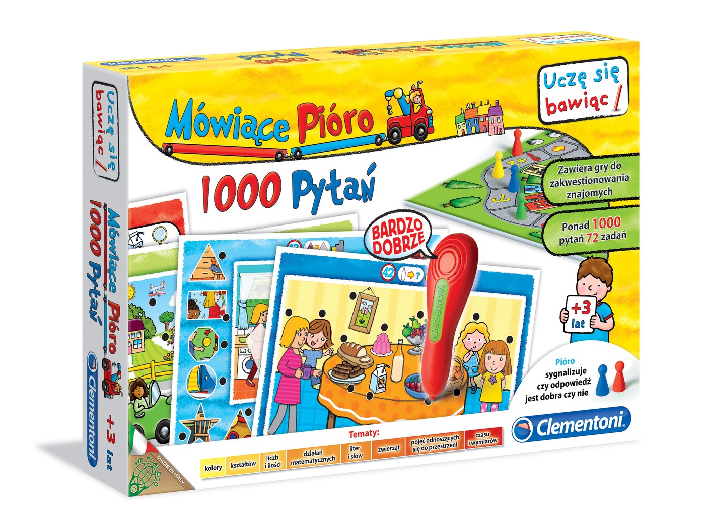 Magiczne pióro, które jest atrakcją gry, sygnalizuje, czy udzielona odpowiedź jest poprawna, czy nie. Dzięki temu dziecko może się bawić i uczyć nie tylko w obecności dorosłych, ale również samo. Pióro mówi po polsku.