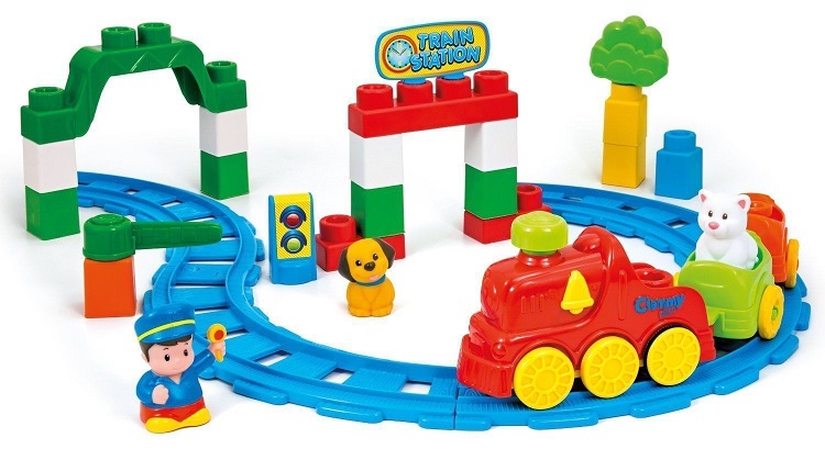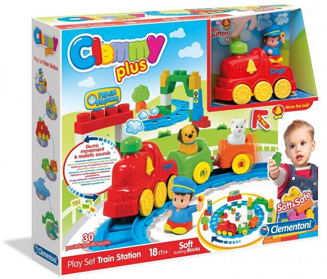 Clementoni Clemmy plus Stacja kolejowa to świetny zestaw, który składa się z 30 elementów. Znajdziesz w nim lokomotywę, wagony, tory, mostek, wiadukt, semafor, dyspozytora ruchu oraz dwa urocze zwierzaki. Dzięki elektrycznemu silnikowy pociąg porusza się sam, a lokomotywa wydaje dźwięki! Zabawka uczy zależności przyczynowo-skutkowych i stymuluje umiejętności manualne. Żywe kolory pobudzają percepcję wzrokową, uwagę, zdolność obserwacji oraz umiejętność kategoryzacji. Klocki są miękkie i bezpieczne dla dziecka. Wykonano je z nadającego się do mycia, nietoksycznego i pachnącego materiału.
