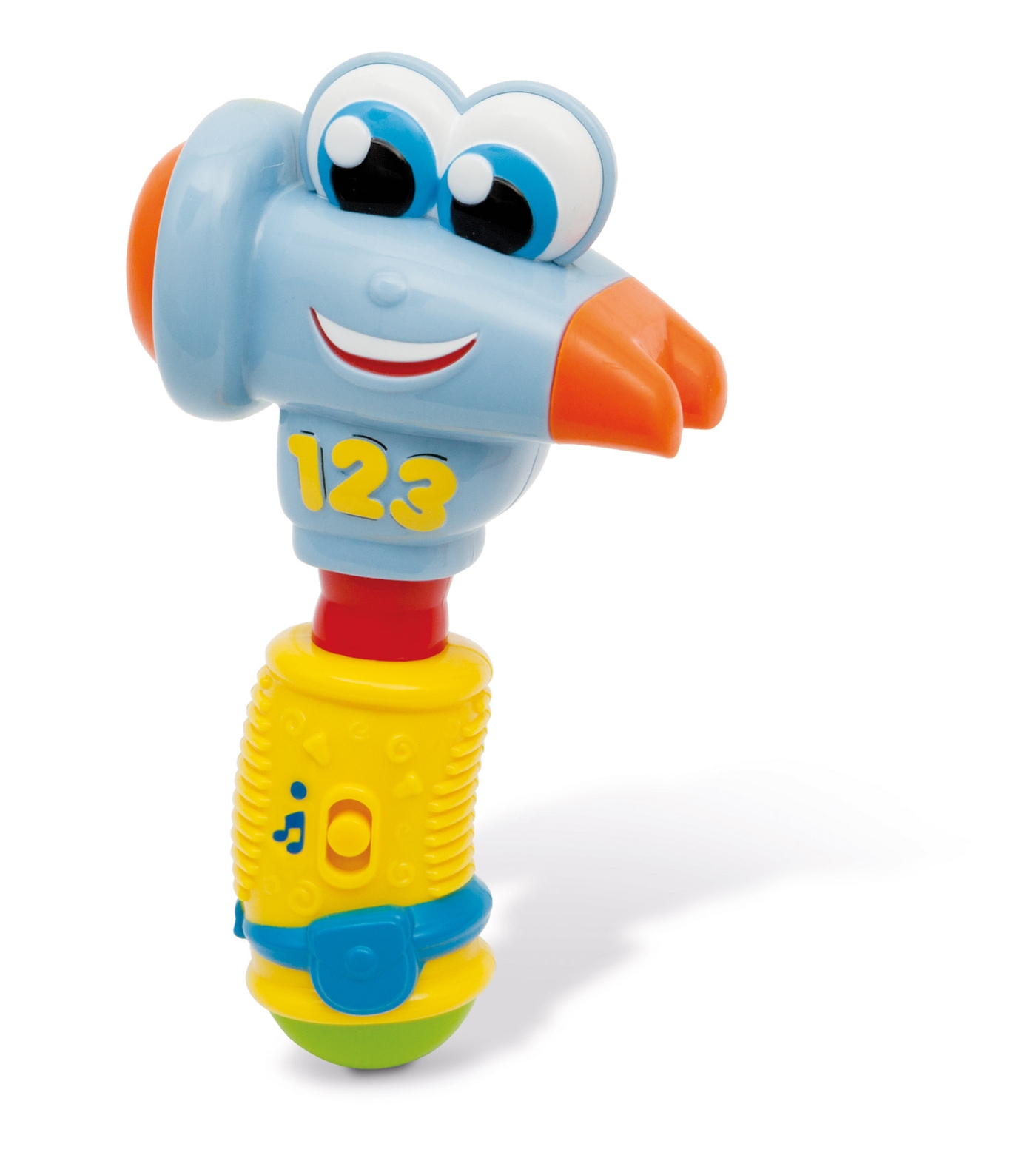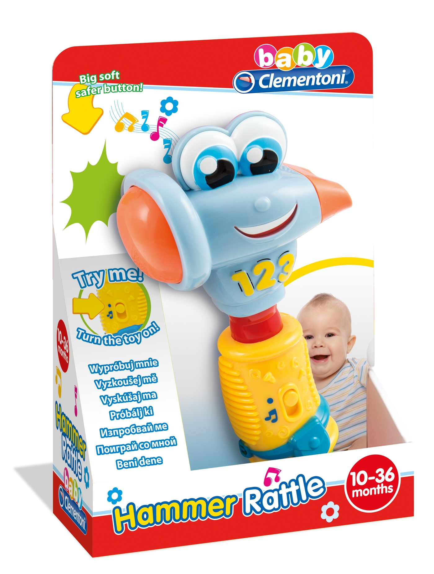 Młotek Donatello to zabawne, elektroniczne narzędzie edukacyjne. Dziecko, naśladując dorosłego, ćwiczy umiejętności manualne i doskonali kontrolę nad własnymi ruchami. Donatello uczy liczyć dzięki wesołej piosence i trzem muzycznym rymowankom z liczbami. Przy uderzaniu młotkiem słychać sympatyczne efekty dźwiękowe. Gumowa końcówka pozwala na całkowicie bezpieczną zabawę i jest gwarancją, że powierzchnia zabawy nie ulegnie uszkodzeniu.