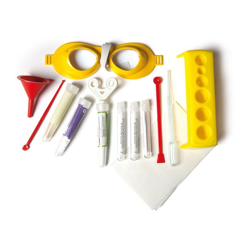 Bogaty zestaw gier, aby poznać tajniki chemii w łatwy i wciągający sposób, dzięki imponującym 60 eksperymentom, które można wykonać całkowicie bezpiecznie. Zawiera kompletny zestaw przyrządów laboratoryjnych i wiele innych substancji do obserwacji, eksperymentów i prawdziwych reakcji chemicznych.