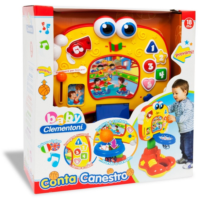 To zabawka typu 2 w 1. Po pierwsze, dzięki niej Maluch może zdobyć swoje pierwsze kosze. Po drugie to świetna zabawka edukacyjna, dzięki której dzieci przyswajają litery, słowa, liczby, kolory i kształty. Kosz może wygrywać wiele zabawnych piosenek i rymowanek oraz przyjaznych efektów dźwiękowych. W zabawce umieszczony jest specjalny czujnik, który pozwala liczyć trafione kosze. Zestaw Moja pierwsza koszykówka Clementoni rozwija percepcje wzrokową, słuchową i koordynację ruchową.