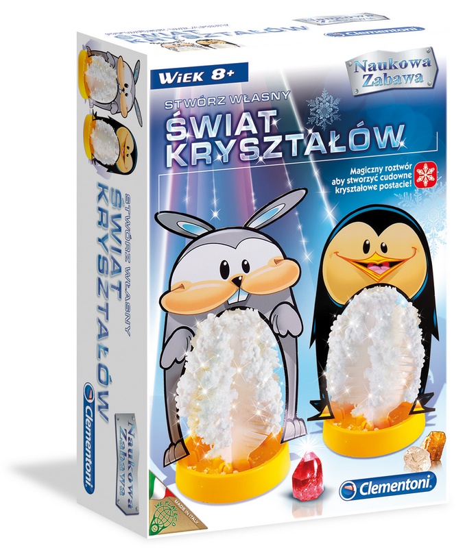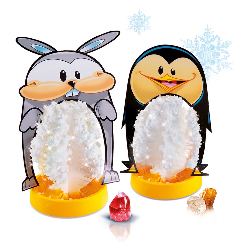 pobudza wyobraźnię dziecka oraz zainteresowania kryształami i doświadczeniami chemicznymi. Dzięki magicznemu roztworowi dziecko może wyhodować lśniące kryształy na zabawnych kartonowych postaciach. Zostań malym chemikiem i przeprowadź wspaniałe i interesujące doświadczenia. Zabawne figurki staną się lśniącą ozdobą Twojego pokoju.