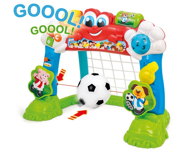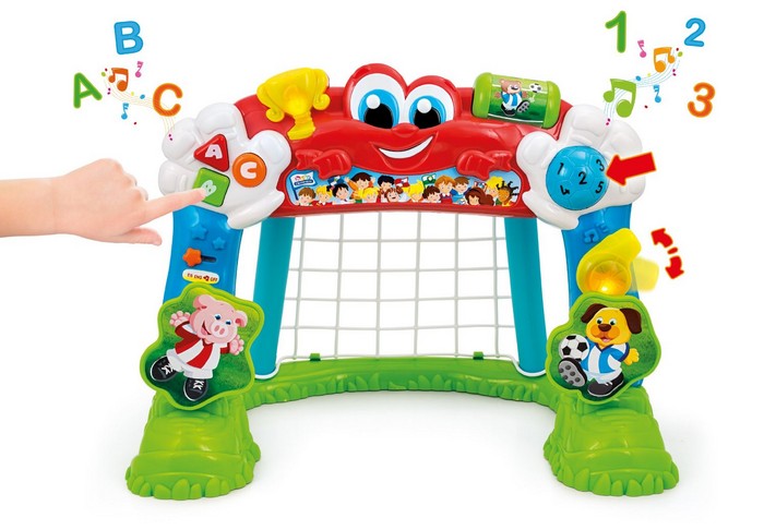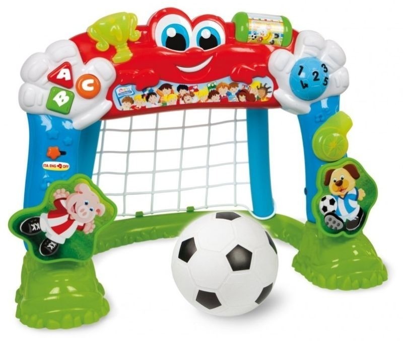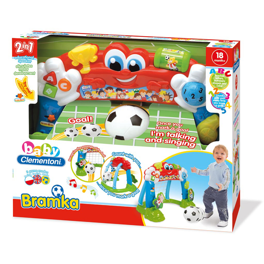 To zabawka typu 2 w 1. Po pierwsze, dzięki niej Maluch może zdobywać swoje pierwsze bramki. Po drugie to świetna zabawka edukacyjna, dzięki której dzieci przyswajają litery, słowa, liczby, kolory i kształty. Bramka może wygrywać wiele zabawnych piosenek i rymowanek oraz przyjaznych efektów dźwiękowych. W zabawce umieszczony jest specjalny czujnik, który rozpoznaje wbicie piłki do bramki. Gdy maluch strzeli bramkę rozlega się okrzyk "goool". Ucząca bramka Clementoni rozwija percepcje wzrokową, słuchową i koordynację ruchową.