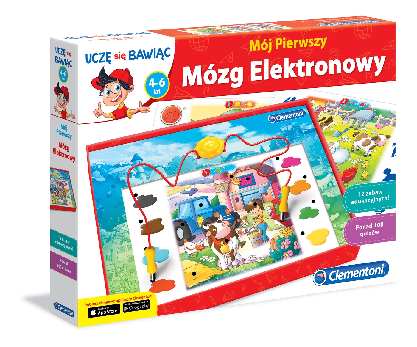 Clementoni Uczę się Bawiąc Mózg Elektronowy 60062 seria dla małych dzieci, która pomaga poszerzać wiedzę poprzez zabawę. To wspaniała gra edukacyjna dla dzieci w wieku przedszkolnym. Gra ta została opracowana z myślą o tym, by wzbudzać u najmłodszych ciekawość do otaczającego je świata. Na planszach z ilustracjami znajdują się zadania, których celem jest rozwijanie i utrwalanie różnych umiejętności m.in. umiejętności kojarzenia, obserwacji czy klasyfikacji. Na elektronicznej planszy kładzie się wymienne plansze i dzięki dwóm wskaźnikom należy dokonać poprawnego wyboru.
