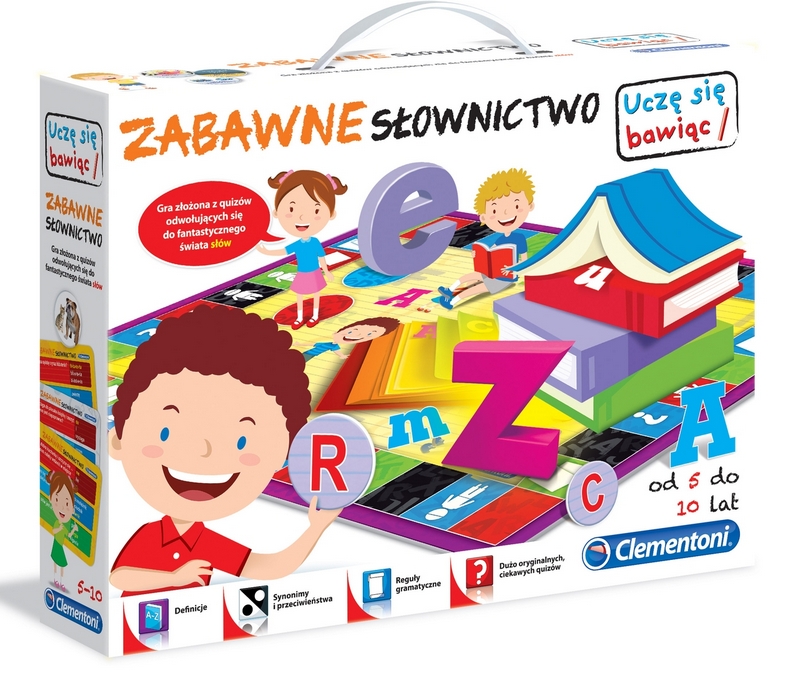 Zabawne słownictwo to najnowsza gra planszowa oparta na quizach odwołujących się do znajomości fantastycznego swiata słów, stworzona z myślą o dzieciach w wieku szkolnym. Dzieci mogą grać między sobą a także z rodzicami, odpowiadając na wiele przyjaznych i kształcących pytań o różnym stopniu trudności dostosowanym do wieku grających. Obecność pól spełniających rolę jokera oraz oryginalne reguły gry czynią tę grę jedyną w swoim rodzaju. Przemierzając trasę gry, dziecko może ćwiczyć swoje umiejętności w zakresie orientacji przestrzennej i opanowania słownictwa.