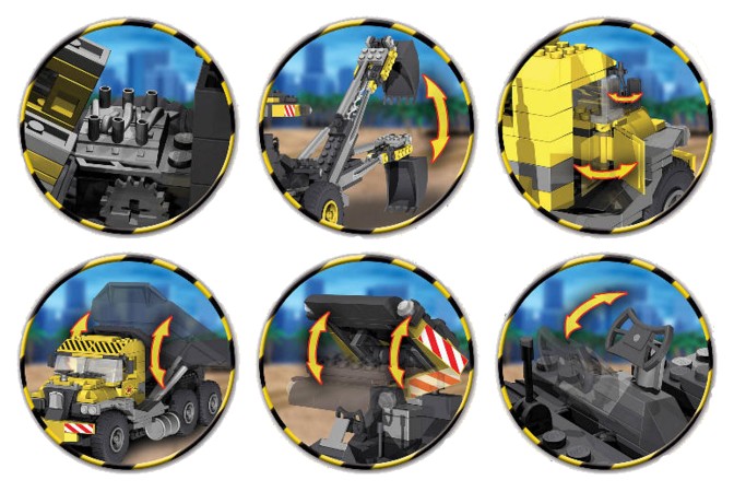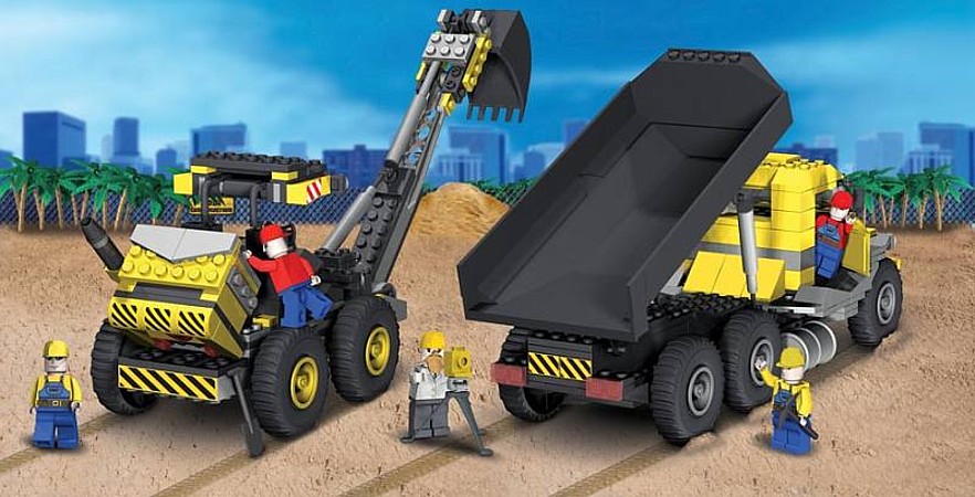 Duża koparka i potężna wywrotka jest świetną zabawką, która pobudza dziecięcą wyobraźnię i rozwija zdolności manualne małych budowniczych. Zestaw posiadający 500 klocków zapewni zabawę na wiele wieczorów. Pojazdy posiadają ruchome elementy, a liczne akcesoria takie jak kilof i łopata urozmaicą każdą budowę.