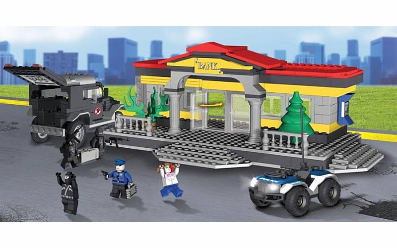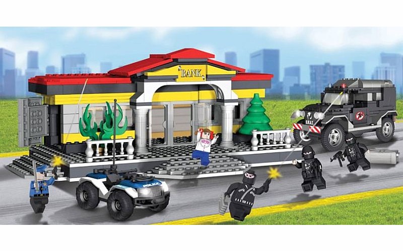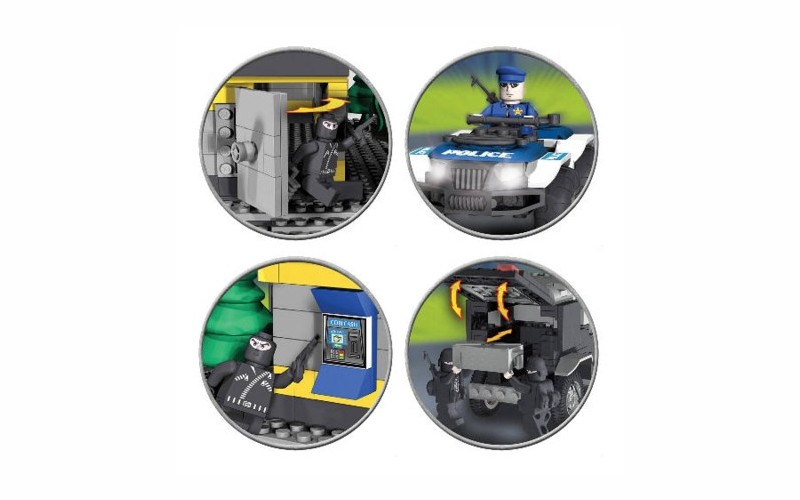 Teraz możesz odegrać scenę napadu na bank. Wystarczy zbudować bank z prawdziwym skarbcem i otwieranymi drzwiami, wóz antyterrorystyczny oraz policyjnego quada. Do dyspozycji jest również kilka figurek między innymi policjanta, 2 antyterrorystów, złodzieja i pracownice banku.