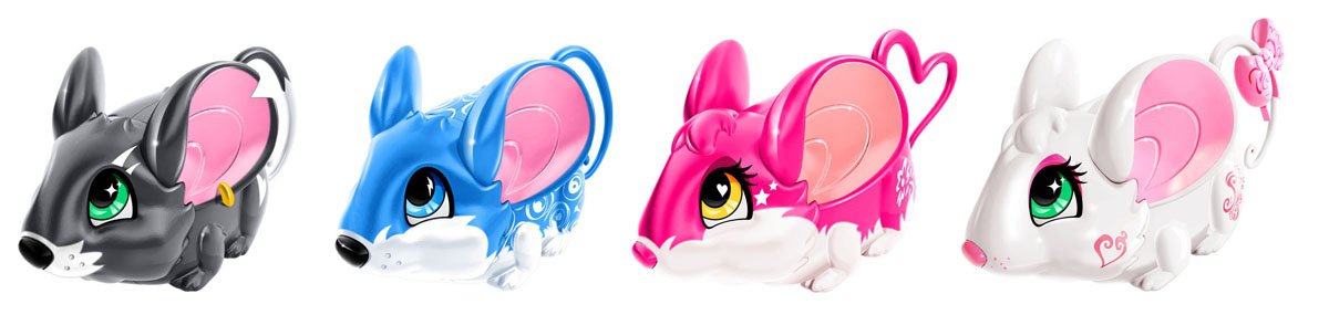 Zwierzątka mają 3 funkcje: przycisk mowy, przycisk odkrywcy oraz przycisk nosek. W trybie mowy zwierzątko wydaje śmieszne dźwięki, w trybie odkrywcy zwierzątko zacznie biegać w około, badać teren oraz wydawać śmieszne dźwięki. Tryb nosek pełni 2 funkcje: w trybie uśpienia „wypróbuj mnie”, a w trybie odkrywcy podpowiada zwierzątku, że natrafiło na przeszkodę. To dopiero początek zabawy. Myszki pokazują najlepiej swoje umiejętności wraz z magicznymi akcesoriami!