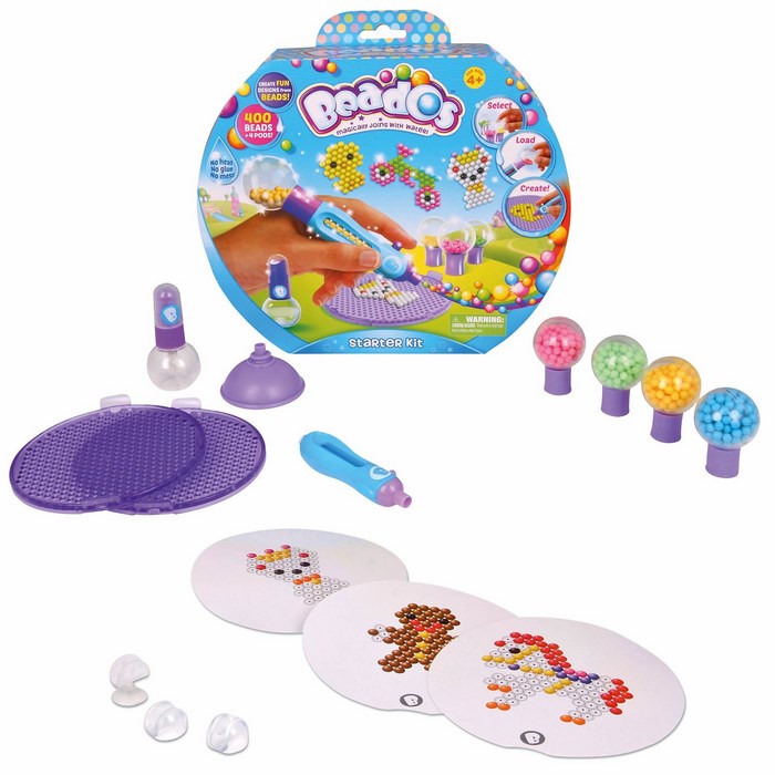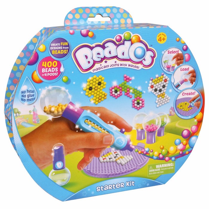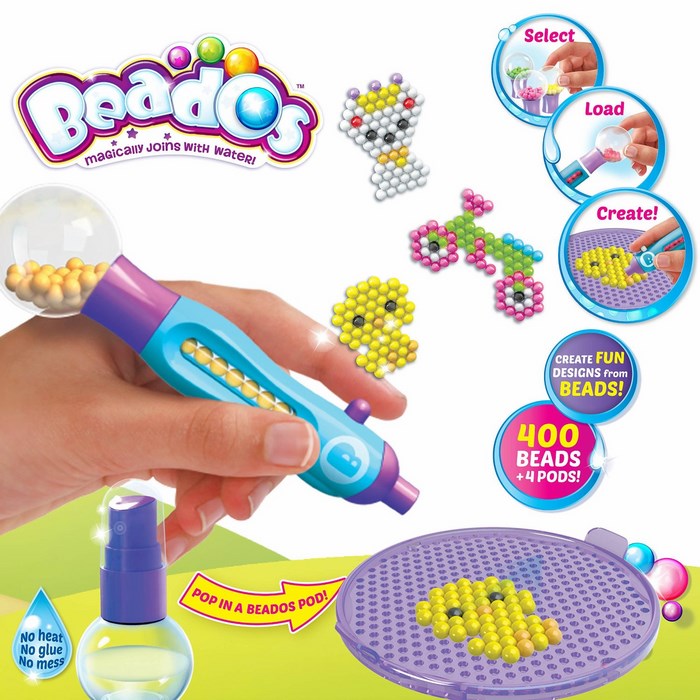 Seria Beados to nowość od Cobi. Są to magiczne koraliki, które łączą się po spryskaniu wodą! Z koralików Beados można układać kolorowe i zabawne wzory. Wystarczy ułożyć koraliki na specjalnej podkładce, spryskać je wodą i gotowe. Koraliki Beados połączą się tworząc śliczny, trwały wzór.