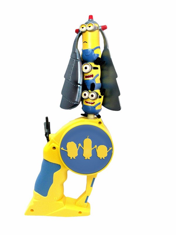 Loty bohaterskich Minionków czas zacząć! Bob, Kevin i Stuart pokażą Ci jak się lata! Złap je i wystrzel, a zobaczysz jak daleko mogą polecieć. Trzymaj wyrzutnię w pozycji pionowej na wyciągnięcie ręki, wyciągnij linkę startową i gotowe! Popatrz jak Twoje Minionki wysoko szybują.