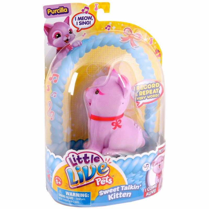 Nowe, interaktywne wzory gadających zwierzątek. Kot Mruczuś, Kotka Miauczka, Śliczne Kaczątko, Psikusek, Śnieżek i Szczekusia to teraz Twoi nowi przyjaciele. I jak pozostałe Little Live Pets (ptaszki i motylki) potrzebują Twojej uwagi i bliskości. Poświęć im swój cenny czas a nie odmówią Ci wspaniałej zabawy. Jeśli poczują się samotne przypomną Ci o tym wydając zabawne dźwięki. Urocze mówiące zwierzaki Little Live Pets potrafią powtórzyć każde Twoje słowo. Jeśli zechcesz odtworzą także całe zdanie.