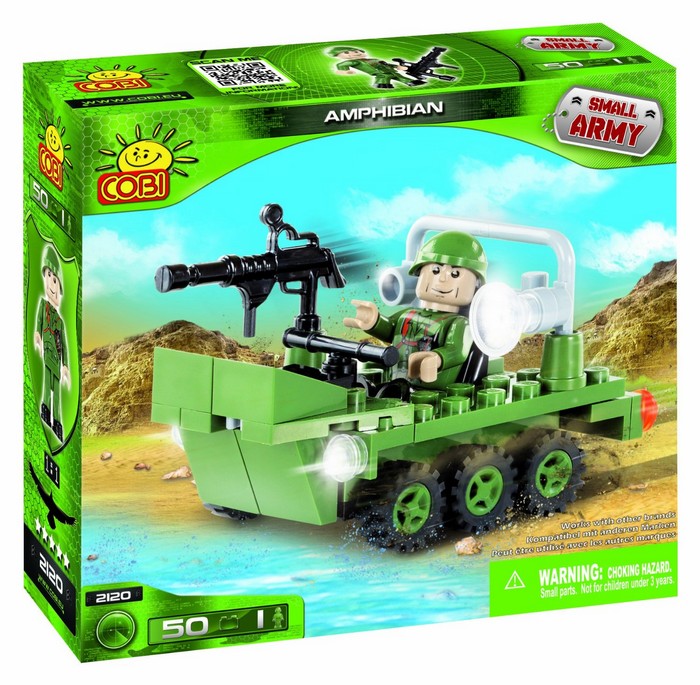 Cobi Small Army Amphibian 2120 to pojazd przeprawowy przeznaczony dla jednego żołnierza. Pozwala się przemieszczać zarówno na lądzie jak i w wodzie. Dzięki temu nieustraszony wojak z łatwością dotrze do najbardziej niedostępnych obszarów na polu bitwy.