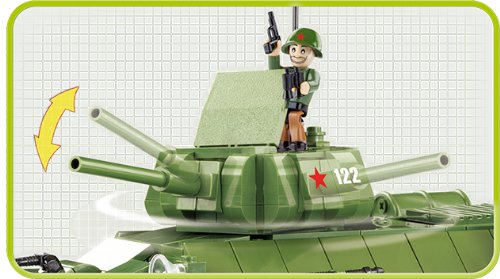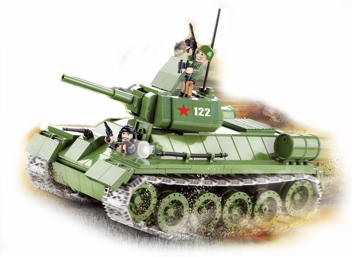 Popularny podczas II Wojny Światowej czołg T34, teraz z możliwością umieszczenia symboli Wojska Polskiego na wieżyczce, oraz na hełmach figurek.