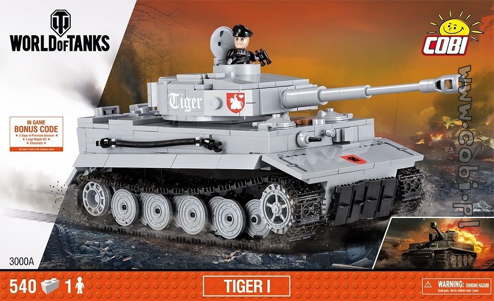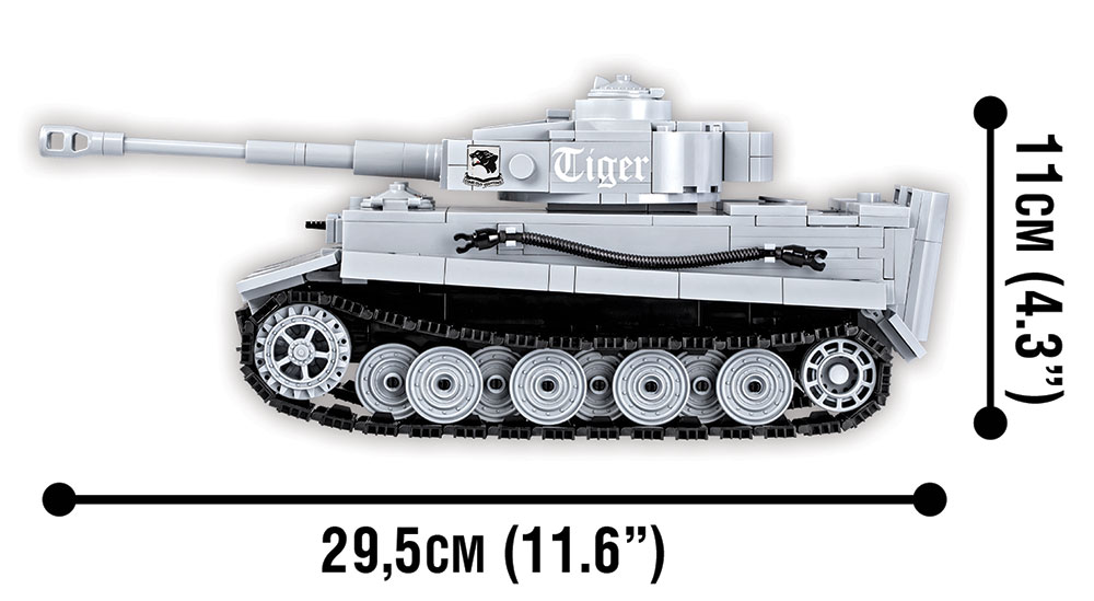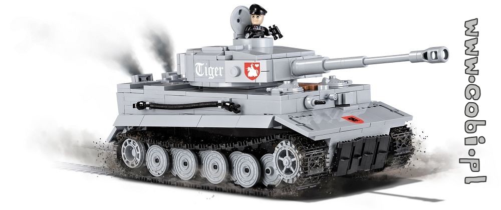 Tiger I - niemiecki czołg ciężki. Jeden z najsłynniejszych pojazdów bojowych tego czasu. Z powodzeniem walczył w Tunezji, Normandii i na froncie wschodnim. W zestawie znajdziesz również figurkę żołnierza z nową czapką oficerską, lornetką i pistoletem samopowtarzalnym luger P08 Parabellum.