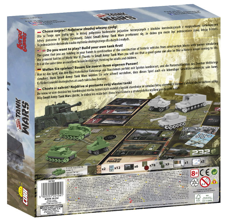 Small Army Tank Wars to strategiczna gra dla dwóch osób, w której połączono budowanie pojazdów historycznych z klocków konstrukcyjnych z rozgrywkami symulującymi bitwy pancerne II wojny światowej.