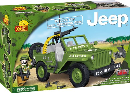 Cobi Small Army Jeep MB z Karabinem 24112 legendarny pojazd Aliantów z II Wojny Światowej. Dzięki niemu Twoja Mała Armia zyska niesamowitą mobilność w każdym terenie. Pojazd wyposażony jest w antenę, koło zapasowe, saperkę i kilof. Na statywie zamontowany jest potężny karabin maszynowy, który będzie postrachem Twoich wrogów.