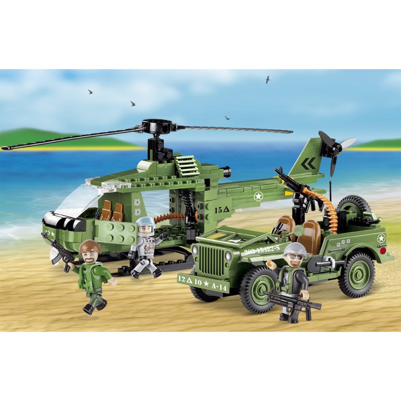 Cobi Small Army Jeep Willys MB z helikopterem 24254