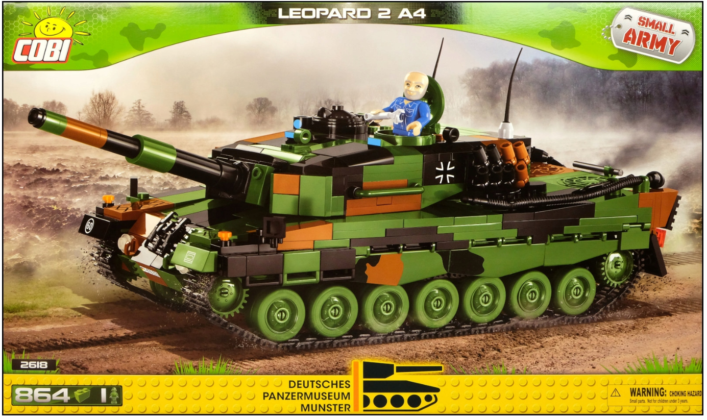 Leopard 2 A4 to niemiecki czołg podstawowy III generacji, który jest następcą czołgu Leopard 1. Jest na wyposażeniu wielu krajów świata i w swych siłach zbrojnych posiada go m.in.: Austria, Chile, Dania, Finlandia, Grecja, Hiszpania, Holandia, Indonezja, Kanada, Katar, Niemcy, Norwegia, Polska, Portugalia, Singapur, Szwajcaria, Szwecja i Turcja. Model został wydany we współpracy z Deutsches Panzermuseum Munster, w którego zbiorach znajduje się ten konkretny wóz o numerze rejestracyjnym Y-678 620, który został odtworzony z klocków konstrukcyjnych COBI. 1