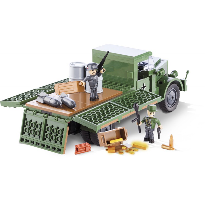 Z 350 elementów zbudyjesz ciężarówkę, która ma otwierane drzwi, tylną i boczne burty skrzyni ładunkowej. Żołnierze muszą załadować na pakę: skrzynie, beczki, bomby, dynamit, pociski, sztabki złota, monety, a do jej bocznej burty zamocować kilof i łopatę.
